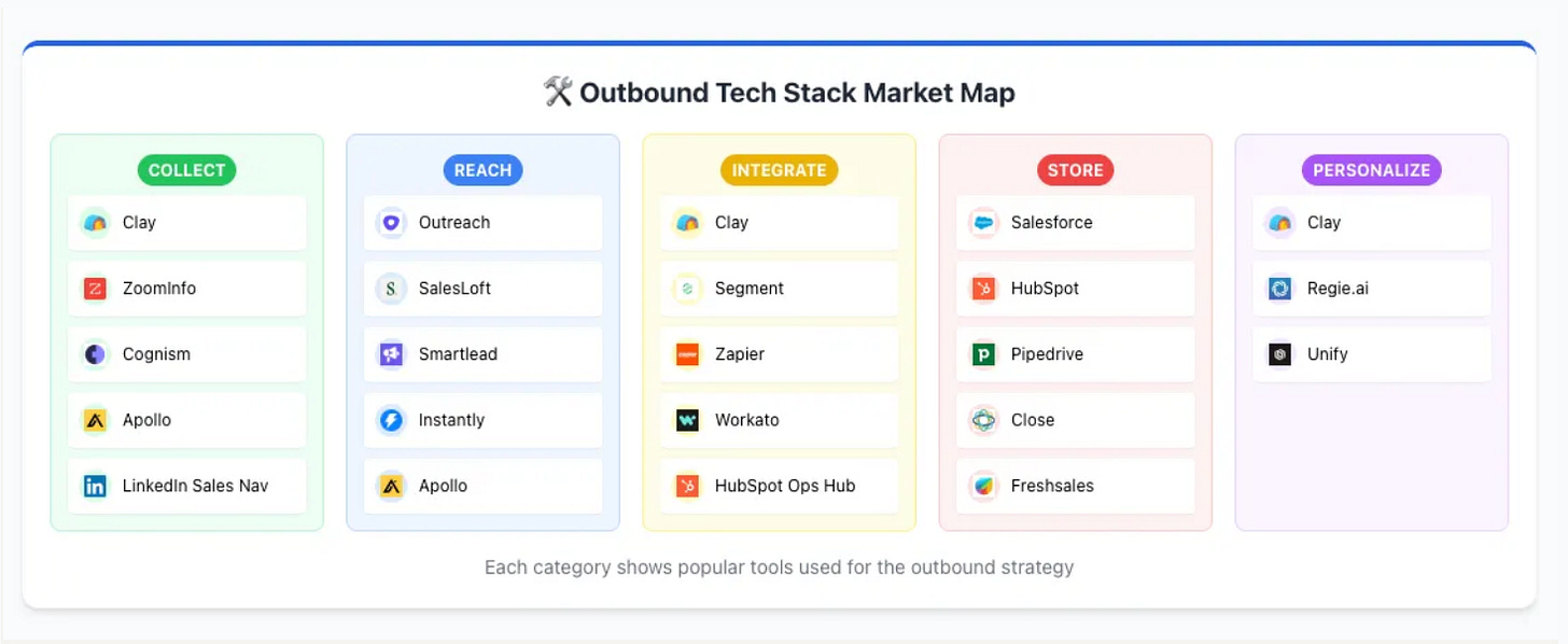 The fragmented sales tech stack is converging. Legacy players like Salesforce & HubSpot are rapidly expanding to offer end-to-end solutions. New startups like Clay (hi!) are emerging as the “glue” to help augment your scattered tech stack. This trend means: