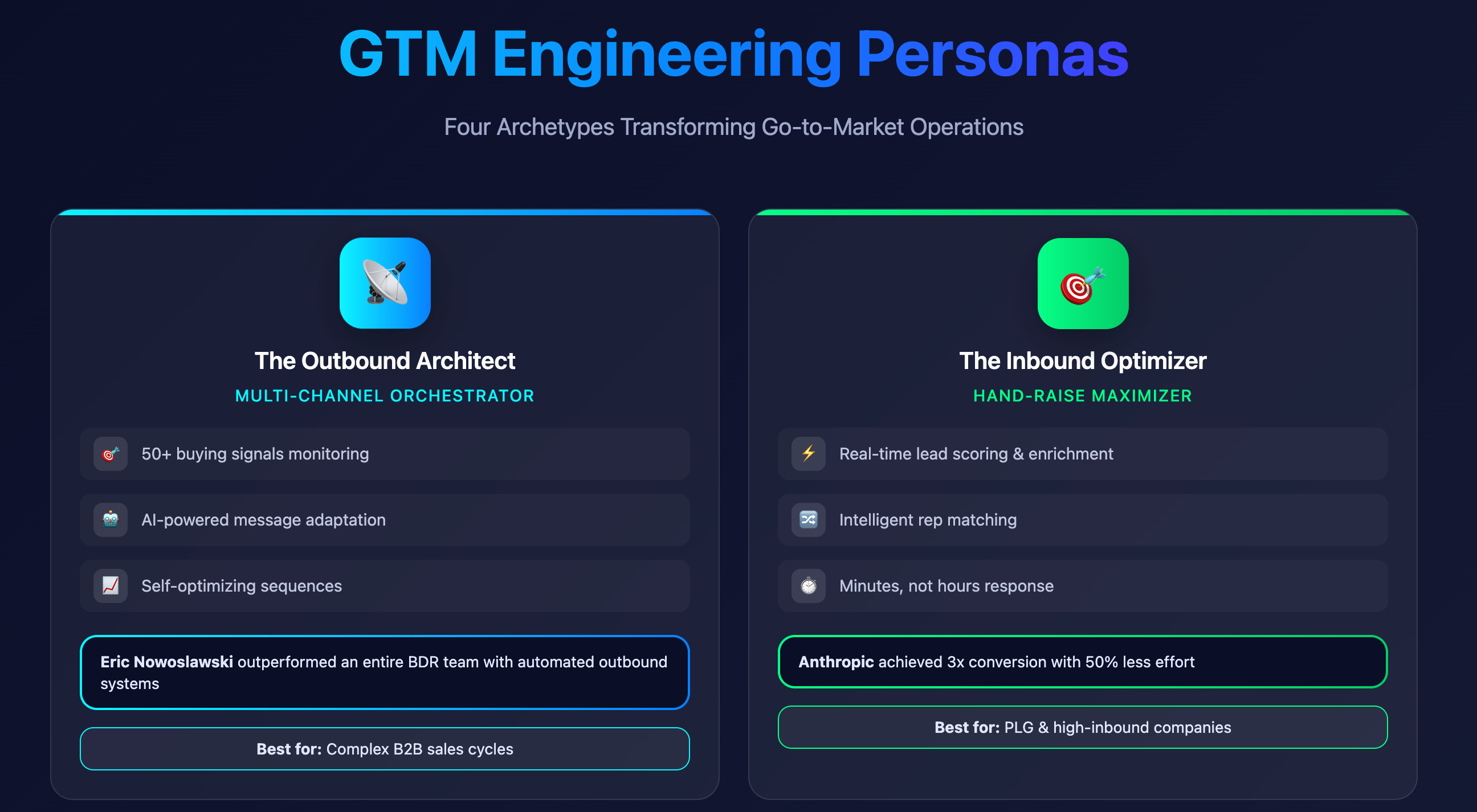 These GTM engineers are masters of multi-channel sequencing and signal-based targeting. They don't just send emails—they orchestrate entire outbound symphonies.